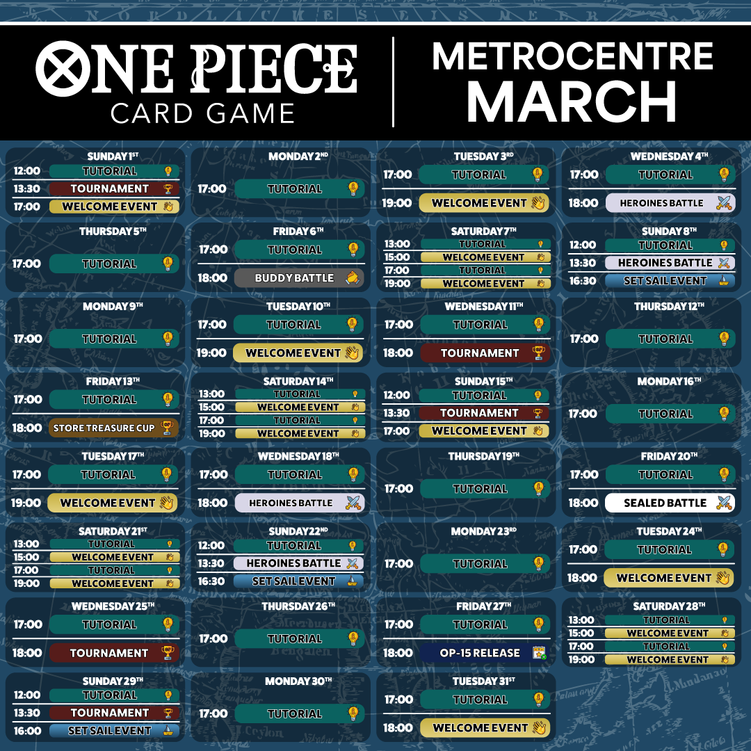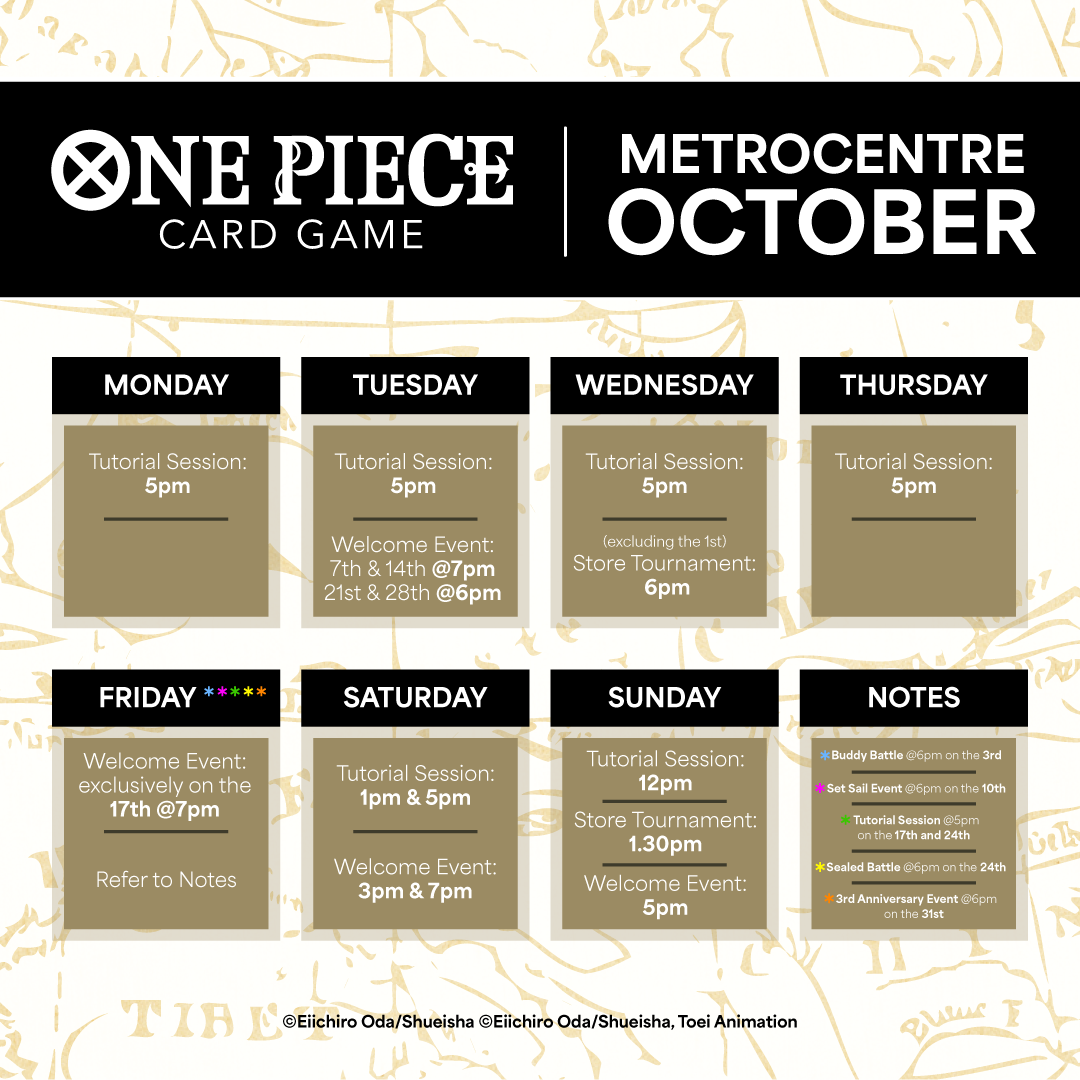 We have weekly events where you can learn the game, have fun with friends, compete, and get exclusive cards! Find out more by clicking on the below events.