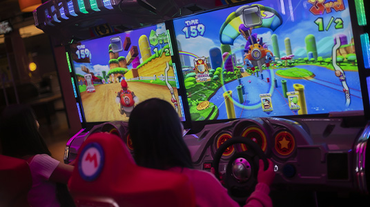 You’ll find something for you here in our arcades. We’ve got shoot ‘em ups, race car simulators, dancing machines, zombies, Mario Kart GP, PAC-MAN Smash, it’s all here!